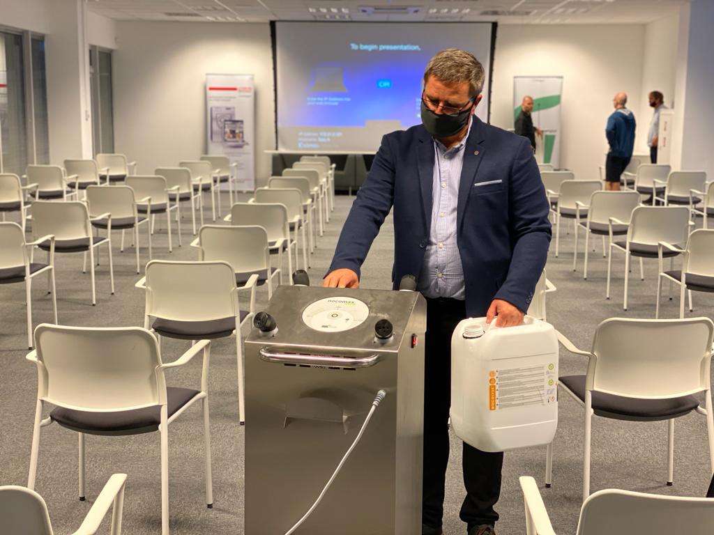 Kolejną innowacją było wprowadzenie urządzeń do skutecznej i bezpiecznej dla użytkownika dezynfekcji całego pomieszczenia i powierzchni za pomocą suchej mgły. Zastąpiły on lampy UV, których działanie jest ograniczone.