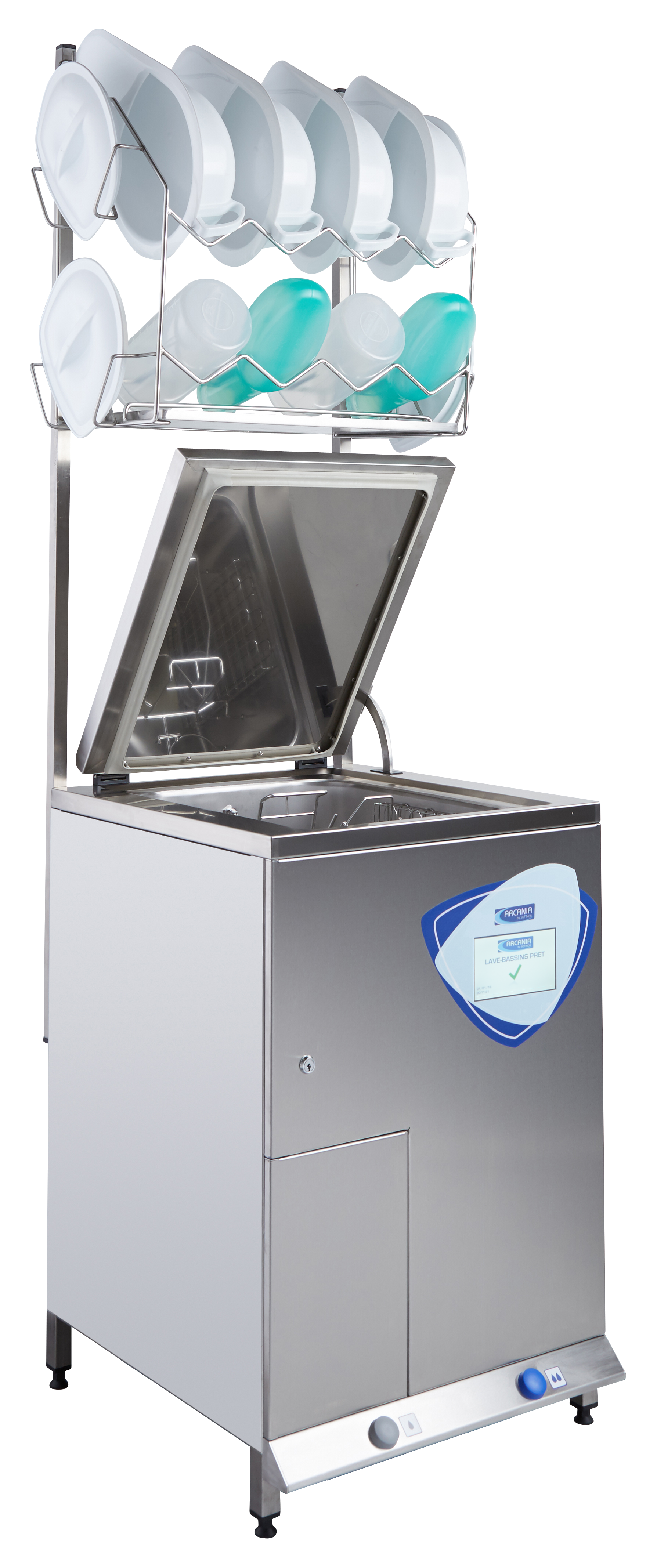 - Różnorodność koszy (uchwytów) do jednoczesnego mycia naczyń sanitarnych (basenów, kaczek, wiader, butelek na mocz itp.)