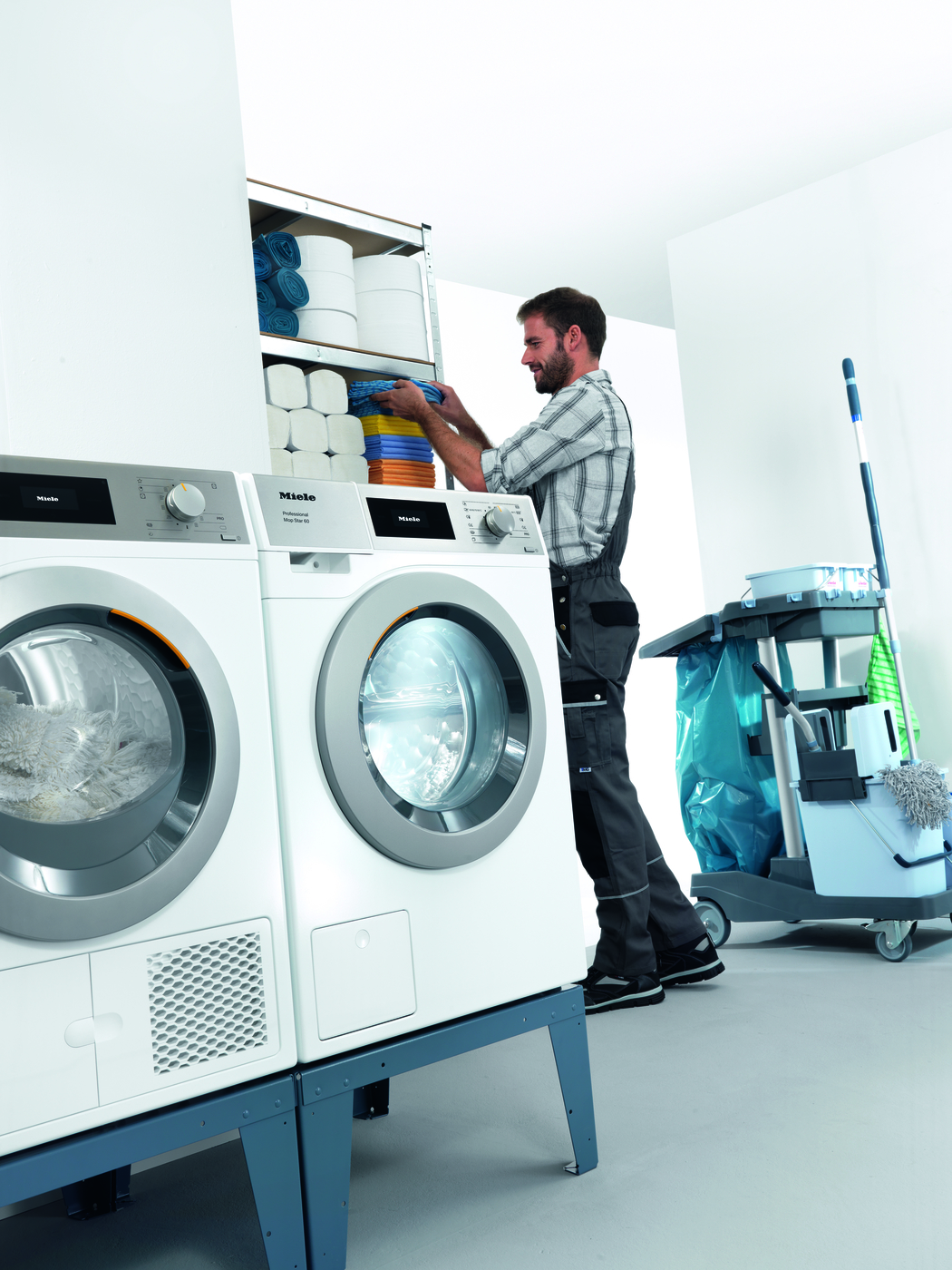 Pralnice do mopów MOPSTAR to idealne i dedykowane rozwiązania dla efektywnego i wygodnego czyszczenia mopów i ścierek w placówkach medycznych. Jako jedyne posiadają sterownik dedykowany tym tekstyliom z fabrycznymi programami dezynfekcyjnymi spełniającymi wytyczne Instytutu Roberta Kocha.